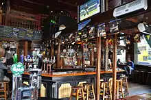 The Bleeding Horse is a pub on Upper Camden Street, Dublin, Ireland. It dates at least back to the 17th century, and was located on St. Kevin's Port (now Camden Street) at the junction of two important highways leading out of the city. On one side was Charlotte Street, leading to Ranelagh and Donnybrook; on the other side was Old Camden Street, which joined Richmond Street, and led to Rathmines and Cullenswood. Both of these old streets disappeared during the renovations in the 1990s. The present building dates from 1871; the interior was renovated in 1992.[1]