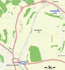 The course of the inaugural Boat Race started at Hambleden Lock and ended at Henley Bridge.