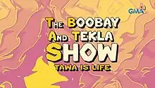 The Boobay and Tekla Show (also known as TBATS: Tawa Is Life) is a Philippine television comedy talk show broadcast by YouTube and GMA Network. The show premiered as a streaming television show on YouTube on March 1, 2018. Directed by Rico Gutierrez and Frasco Mortiz,[1] it is hosted by Boobay and Super Tekla. It premiered on terrestrial television on January 27, 2019 on the network's Sunday Grande sa Gabi line up.