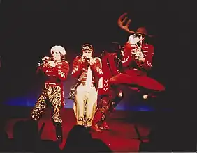 Their act was described by the LA Times as "an antic blend of in-your-face street theater, sublime musical warblings and a few other spices" and "as if the Marx Brothers, stoned to the gills on laughing gas, decided they'd have a stab at playing a transcription of a Bach toccata. While dancing."[3] They formed in 1976, starting out as straight musicians. They began to lampoon themselves between gigs which led to comedy.[3] They were hired as a street group to play period music at the San Francisco Dickens Fair. They were each expected to dress as a character from a Dickens novel and to affect an English accent. They were unable to take this seriously, and dismayed organizers with their rendition of Blue Moon. The comedy routine became so popular they ended up on stage."[4] In 1980, an Australian producer named John Pinder booked them for a five-month tour of the country, with many performances at The Last Laugh in Melbourne. They broke box office records, and follow-up engagements arose in London, Boston, several cities in Canada and back in San Francisco.[3] Then in 1984, they played the Edinburgh Festival Fringe, winning the Edinburgh Comedy Award (then known as the Perrier). Not finding a strong following in America, they continued to mainly play overseas, particularly in Australia and Japan.[4]
