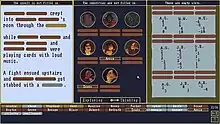 In 'Exploring' mode, the game resembles a point-and-click adventure game where an environment is presented frozen at a point in time. Players are able to investigate the scene by clicking on characters, objects, or documents to collect key words of interest, such as names, places, verbs, and items, that are collected in the bottom of the screen. Whilst the events on screen are frozen in time, players are freely able to navigate between rooms, open the contents of containers, and see what items and documents a character has on their person, as well as any words that they have said.[6]