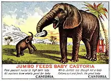 Centaur was an early practitioner of the use of celebrities in mass advertising. Centaur Liniment advertising included a purported endorsement from P.T. Barnum.[7] One famous ad had the company represented by Barnum's famous circus star Jumbo, the giant elephant. Another ad featured the legendary boxer Joe Louis.[8]