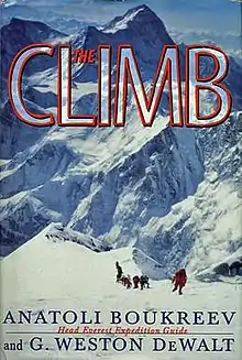 The Climb (1997), republished as The Climb: Tragic Ambitions on Everest, is an account by Russian-Kazakhstani mountaineer Anatoli Boukreev of the 1996 Everest Disaster, during which eight climbers died on the mountain.[1] The co-author, G. Weston DeWalt—who was not part of the expedition—provides accounts from other climbers and ties together the narrative of Boukreev's logbook.