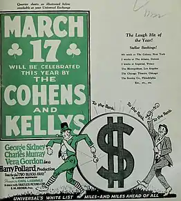The Cohens and Kellys is a 1926 American silent comedy film directed by Harry A. Pollard and starring Charles Murray, George Sidney, Kate Price, and Jason Robards Sr. The film is the first of the Cohens and Kellys film serials. The film is perhaps best known today as the subject of Nichols v. Universal Pictures Corp.,[1] a copyright infringement case, in which Judge Learned Hand articulated the doctrine that copyright protection does not cover the characteristics of stock characters in a story.[2]