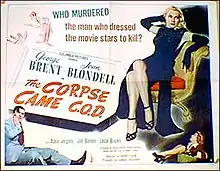 The Corpse Came C.O.D. is a 1947 American comedy mystery film directed by Henry Levin, produced by Samuel Bischoff and starring George Brent, Joan Blondell and Adele Jergens. The comedic mystery is notable for featuring cameos by Hollywood gossip columnists appearing as themselves: Harrison Carroll, Jimmy Fidler, George Fisher, Hedda Hopper, Erskine Johnson, Louella Parsons, and Sidney Skolsky. The movie is based on a novel by columnist Jimmy Starr, who also appears in the movie. The title makes reference to the practice of cash on delivery. It was produced and distributed by Columbia Pictures.