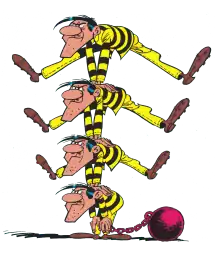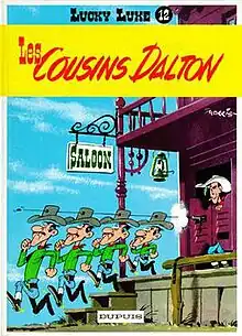 Joe, William, Jack and Averell Dalton, known together as The Daltons or the Dalton brothers, are fictional characters in the Lucky Luke Western comics series. Four brothers and outlaws acting as the most recurring enemies to protagonist Lucky Luke, they were created by artist Morris and writer René Goscinny. Loosely inspired by the real-life Dalton Gang active in the United States in early 1890s (who themselves appeared in the 1954 Lucky Luke story "Outlaws"), The Daltons first had a one-panel cameo appearance in the 1958 comic Lucky Luke versus Joss Jamon, before being prominently featured later that year in the comic The Dalton Cousins (named as such because the four are billed as the cousins of their real-life counterparts within the Lucky Luke universe).[1]