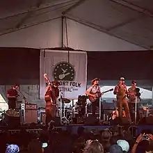The Deslondes are an Americana musical group from New Orleans, Louisiana. Their music blends together influences from folk, rock 'n' roll, bluegrass, R&B, American roots music, blues, gospel, country, and zydeco.[1][2] The group's members are Dan Cutler (vocals/stand-up bass), Sam Doores (vocals/guitar), Riley Downing (vocals/guitar), Cameron Snyder (vocals/percussion), and John James Tourville (fiddle/pedal steel). All five members share in the songwriting process.[3]