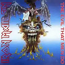 "The Evil That Men Do" is a song by the English heavy metal band Iron Maiden. It is the band's seventeenth single and the second from their seventh studio album, Seventh Son of a Seventh Son (1988). The single debuted at number six in the UK charts and quickly rose to number five. The single's B-sides are re-recordings of "Prowler" and "Charlotte the Harlot" which appear as tracks number one and seven/eight respectively on the band's debut album Iron Maiden.