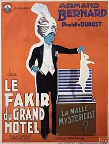 The Fakir of the Grand Hotel (French: Le fakir du Grand Hôtel) is a 1934 French comedy film directed by Pierre Billon and starring Armand Bernard, Paulette Dubost and Annie Ducaux.[1] [2] The film's sets were designed by the art director Robert-Jules Garnier.