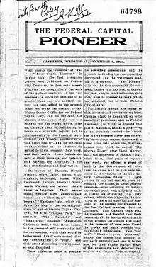 2. 1 2 3 "Federal Capital Pioneer (Canberra, ACT : 1924 - 1926)". Trove. National Library of Australia. Retrieved 8 January 2017.