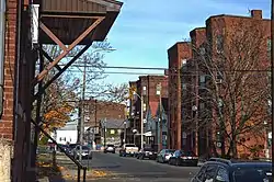 The Flats is a neighborhood in Holyoke, Massachusetts located to the east of the city center, adjacent to the downtown. Although it lies at one of the lowest elevations in Holyoke, its name derives not from topography but from the brick tenement "flats" which characterized its architecture throughout much of its history. Historically the area has also been associated with the name Depot Hill,[2] as it was the location of the city's first freight and passenger railway stations; passenger service was restored at Holyoke station in 2015, following a period of absence after 1967.[3] A section of the neighborhood between Lyman and Appleton Street to north and south respectively, and between Race and Bowers Street to the east and west is also known as Depot Square.[4][5] Today the area features the Holyoke Innovation District, Canal System, Hadley Falls Company Housing District, Marcella Kelly Elementary School, local Amtrak station and 275 acres (111 ha) of residential, commercial, and industrial zoning.