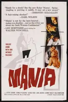 Several cuts of the film have circulated in different markets. The currently available DVD from Image Entertainment lists the runtime for the "uncut" original theatrical version at 94 minutes, with a slightly extended "Continental" version – produced for European markets with more permissive censors – running at 95 minutes and including short sequences or alternate takes with more nudity.[8] The film was released by Valiant in the USA under the titles Mania and Psycho Killers using the British theatrical cut, but a later 1965 re-release by Pacemaker Pictures under the title The Fiendish Ghouls cut 23 minutes from the film's runtime. Both the UK and the continental cuts of the film are included on the DVD from Image Entertainment.[4]