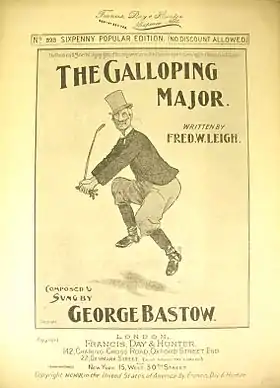 "The Galloping Major" is a British popular song written by Fred W. Leigh and composed by George Bastow. It was first published in London in 1906 by Francis, Day and Hunter. It was first sung by George Bastow,[1] and first recorded by Harry Graham, also in 1906.