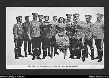 The Girls of Gottenberg is an Edwardian musical comedy in two acts by George Grossmith, Jr. and L. E. Berman, with lyrics by Adrian Ross and Basil Hood, and music by Ivan Caryll and Lionel Monckton. P. G. Wodehouse's personal papers indicate that he wrote the lyrics for one song, "Our Little Way", but this was not included in the libretto of show, and he was not credited as a lyricist.[1] Set in Germany, the comedy of the show is largely based on stereotypes of the German people and their culture as seen seen through a British lens.[2]