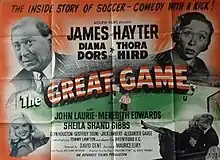 The Great Game is a 1953 British sports comedy-drama directed by Maurice Elvey and starring James Hayter, Thora Hird and Diana Dors. It was based on a play by Basil Thomas.[1] Many of the scenes were shot at Griffin Park the home of Brentford F.C.[2] Several professional football players made appearances in the film including Tommy Lawton.