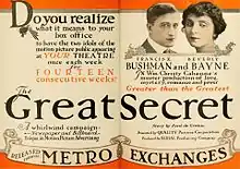 The Great Secret is a 1917 silent film adventure serial directed by Christy Cabanne and starring Francis X. Bushman and Beverly Bayne. It was produced independently by Louis B. Mayer and released through Metro Pictures. Mayer's first production credit.