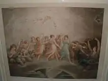 A larger view of the center area of The Hours by Maria Cosway (painting) and Francesco Bartolozzi (engraving), showing the detail in the transparent gowns and wings.