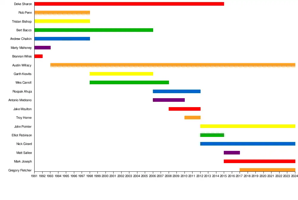| Past members | Matt Sallee Deke Sharon Tristan Bishop Rob Penn Marty Mahoney Andrew Chaikin Kevin Fudge Garth Kravits Bert Bacco Wes Carroll Antonio Medrano Elliott Robinson Jake Moulton Roopak Ahuja Troy Horne |