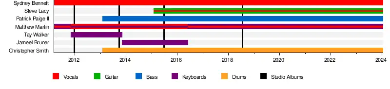 Contributions refer to members' live roles. On studio recordings, each member plays a variety of instruments.