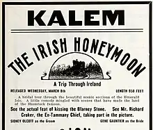The Irish Honeymoon is a 1911 American silent film produced by Kalem Company and distributed by General Film. It was directed by Sidney Olcott with himself and Gene Gauntier in the leading roles.