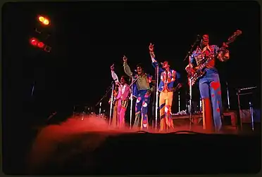 It is a familiar act—the slick choreography is still there along with the soul harmonies somewhat sweetened for broader (that is to say, white) appeal. The song performed were also by and large familiar fodder and, as, usual, stage tricks were kept to a minimum (a little strobe lighting, some dry ice fumes). There was a thumping exit with everybody, group and audience, yelling “party, party,” over and over. - Ian Dove, 1974, The New York Times[4]