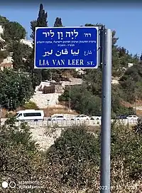 Lia Van Leer street sign, next to the Jerusalem Cinematheque