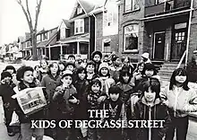 The Kids of Degrassi Street is a Canadian children's television series created by Kit Hood and Linda Schuyler. The first entry in the Degrassi franchise and the only one to focus on children instead of teenagers, it follows the lives of a group of children living on De Grassi Street in Toronto. It was produced by Hood and Schuyler's independent company Playing With Time. The series originated as a collection of annual standalone short films that started with Ida Makes a Movie, a live-action adaptation of the Kay Chorao book which premiered on the CBC on December 8, 1979.[2] It became a full series in 1982 when the CBC ordered five more episodes.