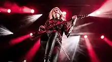 The Kills were part of the line-up for Coachella 2016.[25] The Kills fifth studio album, Ash & Ice, was released on 3 June 2016.[26] A new single titled "Doing It to Death" was released in March 2016.[27] The duo embarked on a lengthy world tour,[28] but were forced to cancel European festival dates after Mosshart was diagnosed with pneumonia.[29] In 2017 the group were the support act for Guns N' Roses during the UK leg of their world tour. In 2018, they released a 7-inch single with cover versions of Saul Williams' "List of Demands (Reparations)" and Peter Tosh's "Steppin' Razor", followed by a promotional 7-inch a year later for National Dive Bar Day with the B-sides "Blue Moon" and "Night Train".[30] Mosshart also published her multimedia book Car Ma later that year.[31] The band were largely inactive during 2019, only playing one show that October supporting Social Distortion. At the show, the band played Midnight Boom in its entirety.[32]