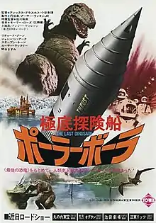 The Last Dinosaur (Japanese: 極底探険船ポーラーボーラ, Hepburn: Kyokutei Tankensen Pōrābōra, lit.'Polar Probe Ship: Polar Borer') is a 1977 Japanese/American tokusatsu co-production, co-directed by Alexander Grasshoff and Tsununobu Kotani (the latter billed as Tom Kotani),[1] and co-produced by Japan's Tsuburaya Productions and Rankin/Bass Productions. The picture was filmed at Tsuburaya Studios in Tokyo[1] and on location in the Japanese Alps.[2] The film was intended for a U.S. theatrical release, but failed to find a distributor and ended up as a television film, airing on ABC on February 11, 1977 in an edited 92-minute run time. The film was eventually picked up for overseas markets by Cinema International Corporation, where it was released in the unedited 106-minute version as a double feature in the U.K. with the edited version of Sorcerer (the latter considered a remake of The Wages of Fear). Toho also picked up distribution rights to The Last Dinosaur in Japan for a theatrical release utilizing the unedited 106-minute version in English with Japanese subtitles, and later the film debuted on Japanese television dubbed in Japanese.