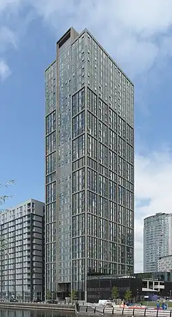 The Lexington is a 35-storey residential building at Princes Dock in Liverpool, England. Part of the larger Liverpool Waters re-generation project, it was completed in September 2021.[2] Estimated to cost £90 million, the "New York style" building includes 325 apartments, a sky lounge, gym and rooftop garden.[3] Upon completion, it became the third tallest building in Liverpool at 112.5 m (369 ft).[4]