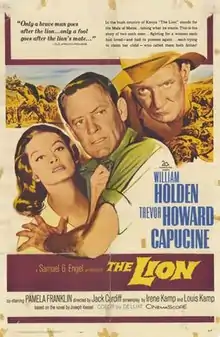 The Lion is a 1962 British adventure film in CinemaScope directed by Jack Cardiff, starring William Holden and Trevor Howard. Filmed on location in Kenya and Uganda and on a property in Kenya co-owned by Holden, the Mount Kenya Safari Club.[1]