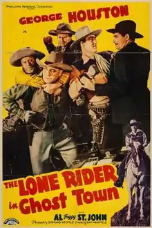 The Lone Rider in Ghost Town is a 1941 American Western film directed by Sam Newfield and written by Joseph O'Donnell. The film stars George Houston as the Lone Rider and Al St. John as his sidekick "Fuzzy" Jones, with Rebel Randall, Budd Buster, Frank Hagney and Stephen Chase. The film was released on May 16, 1941, by Producers Releasing Corporation.[1][2][3]