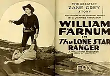 The Lone Star Ranger is a lost[1] 1919 American silent Western film based on the 1915 novel by Zane Grey and stars William Farnum. The film was directed by J. Gordon Edwards and produced and distributed by Fox Film Corporation. Portions of the film were shot in Palm Springs, California.[2] Just 3 years after the release of the film Fox dusted off the script and refilmed the story with Tom Mix.[3][4]