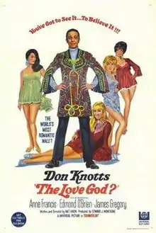 The Love God? is a 1969 American comedy film starring Don Knotts and Edmond O'Brien. It was written and directed by Nat Hiken,[1] who died between the completion of shooting and the film's release.[2] The Love God? marked a change of pace for Knotts, who had exclusively appeared in family comedies, and was an attempt to integrate Knotts into the adult-oriented films that dominated the late 1960s and early 1970s.