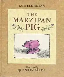The Marzipan Pig (1986, ISBN 0-374-34859-6) is a children's book by Russell Hoban. The plot involves a marzipan pig that has somehow fallen behind a couch.