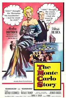 The Monte Carlo Story is a 1956 romantic comedy-drama film written and directed by Samuel A. Taylor, based on an original story by Taylor, Marcello Girosi, and Dino Risi. Marcello Girosi produced the film, which was the first shot in the Technirama process. Jean Louis designed the costumes.