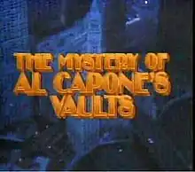 The Mystery of Al Capone's Vaults is a two-hour live American television special that was broadcast in syndication on April 21, 1986, and hosted by Geraldo Rivera. It centered on the live opening of a walled-off underground room in the Lexington Hotel in Chicago once owned by noted crime lord Al Capone, which turned out to be empty except for debris. Thirty million viewers watched, making it the "highest rated syndicated special" in history.[1] Rivera had inadvertently launched a "no-news" form of news, where instead of reporting on news, entire programs were about possible and hypothetical news.[1] Included in this were news channels counting down and hyping an upcoming news event, like a presidential briefing.[1]