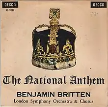The National Anthem is a 1962 choral and orchestral arrangement of God Save the Queen by Benjamin Britten. The arrangement was written for the Leeds Festival. It has been described as an "extraordinary progression from pianissimo prayer to pealing, overlapping choral fortissimo".[1]