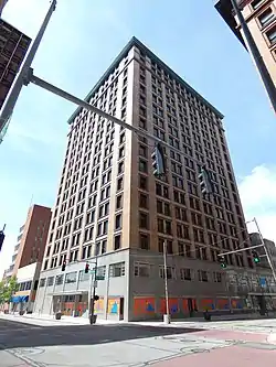 The seventeen story structure was constructed in 1906 by Toledo business partners A.L. Spitzer and C.M. Spitzer.[2] The Spitzer cousins named the building after their grandfather, Nicholas Spitzer. The building was designed by Norval Bacon and Thomas Huber, partners of the Toledo architectural firm of Bacon & Huber.[3] The Nicholas Building was described in 1910 as one of the "largest and most modern office buildings in the Northwest”, the area known today as the East North Central States.