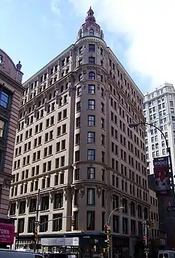 The building is located at 1170 Broadway (1166–1172, also known as 14-18 West 28th Street) on the southeast corner of 28th Street and Broadway in the NoMad neighborhood of Manhattan. It was built in 1902–03 as stores and offices, and was designed by Schickel & Ditmars in the Beaux Arts style. The building was originally named after the first owner, Caroline H. Johnston, and called the Johnston building. It is located within the Madison Square North Historic District.[12]