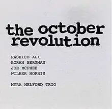 The October Revolution is a live album that documents a concert celebrating the 30th anniversary of the 1964 music festival known as the October Revolution in Jazz. It contains two long tracks, dedicated to composer, trumpeter, and festival organizer Bill Dixon, by a quartet that features drummer Rashied Ali (a participant in the festival), pianist Borah Bergman, saxophonist Joe McPhee, and bassist Wilber Morris, plus a single short track featuring the Myra Melford Trio, led by pianist Melford, and featuring bassist Lindsey Horner and drummer Tom Rainey. (Saxophonist Zane Massey and his trio also performed at the event, but the music was not included due to technical problems.) The album was recorded on October 22, 1994, at the Fez Room under the Time Cafe in New York City, and was released in 1996 by Evidence Music.[1][2]