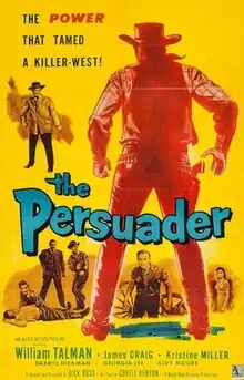 The Persuader is a 1957 American Western film directed by Dick Ross and written by Curtis Kenyon. The film stars William Talman, James Craig, Kristine Miller, Darryl Hickman, Georgia Lee and Alvy Moore. The film was released on October 13, 1957, by Allied Artists Pictures.[1][2][3]
