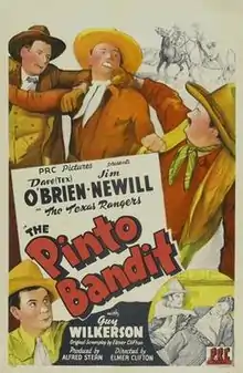 The Pinto Bandit is a 1944 American Western film written and directed by Elmer Clifton. The film stars Dave O'Brien, James Newill, Guy Wilkerson, Mady Lawrence, James Martin and Jack Ingram. The film was released on April 27, 1944, by Producers Releasing Corporation.[1][2][3]
