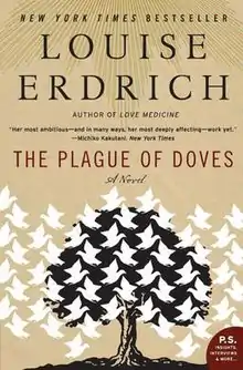 The Plague of Doves is a 2008 New York Times bestseller and the first entry in a loosely-connected trilogy by Ojibwe author Louise Erdrich.[1] The Plague of Doves follows the townsfolk of the fictional Pluto, North Dakota, who are plagued by a farming family's unsolved murder from generations prior.[1] The novel incorporates Erdrich's multiple narrator trope that is present in other works including the Love Medicine series.[1] Its sequel is the National Book Award winning novel The Round House. Erdrich concluded the "Justice" trilogy with LaRose in 2016.[2]