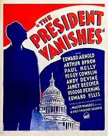 The President Vanishes (released in the United Kingdom as Strange Conspiracy) is a 1934 American political drama film directed by William A. Wellman and produced by Walter Wanger. Starring Edward Arnold and Arthur Byron, the film is an adaptation of Rex Stout's political novel of the same name.