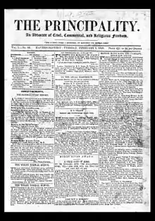 The Principaliy (established in 1847 by David Tudor Evans) was a weekly English language newspaper that was distributed throughout South Wales in the United Kingdom.