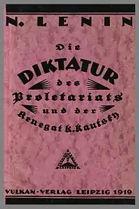 Cover of the first German edition of Lenin's Die Diktatur des Proletariats und der Renegat K. Kautsky (1919).
