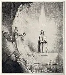 Lievens painted The Raising of Lazarus in 1631. Over 1630-1632 he had a contest with Rembrandt to produce the best composition depicting "The Raising of Lazarus".[2] The Lievens' painting is done primarily in shades of gray, and it is a night scene.[3] Lievens also produced an etching based on the painting.[2]