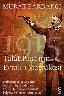 The Remaining Documents of Talaat Pasha[1][2] (Turkish: Talât Paşa'nın Evrak-ı Metrûkesi), also known in Turkey as The Abandoned Documents of Talaat Pasha[3] and Talaat Pasha's Black Book, is the title of a 2008 book by the Turkish journalist Murat Bardakçı. It reproduces in modern Turkish script a selection of documents from the WWI period by Mehmed Talaat Pasha, the Ottoman Empire's Grand Vizier and Minister of Interior, that deal with the relocations of both Muslim Turks and Armenians and the expropriation of abandoned Armenian and Greek property. Its full English title is The Remaining Documents of Talaat Pasha: Documents and Important Correspondence Found in the Private Archives of Sadrazam Talaat Pasha about the Armenian Deportations.[2]