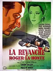 The Revenge of Roger (French: La revanche de Roger la Honte) is a 1946 French historical crime film directed by André Cayatte and starring Lucien Coëdel, María Casares and Paul Bernard. The film is based on a novel by Jules Mary.[1] It was a sequel to the film Roger la Honte also directed by Cayatte which had been shot in 1945 but was released in 1946. The film's sets were designed by the art director Jacques Colombier.
